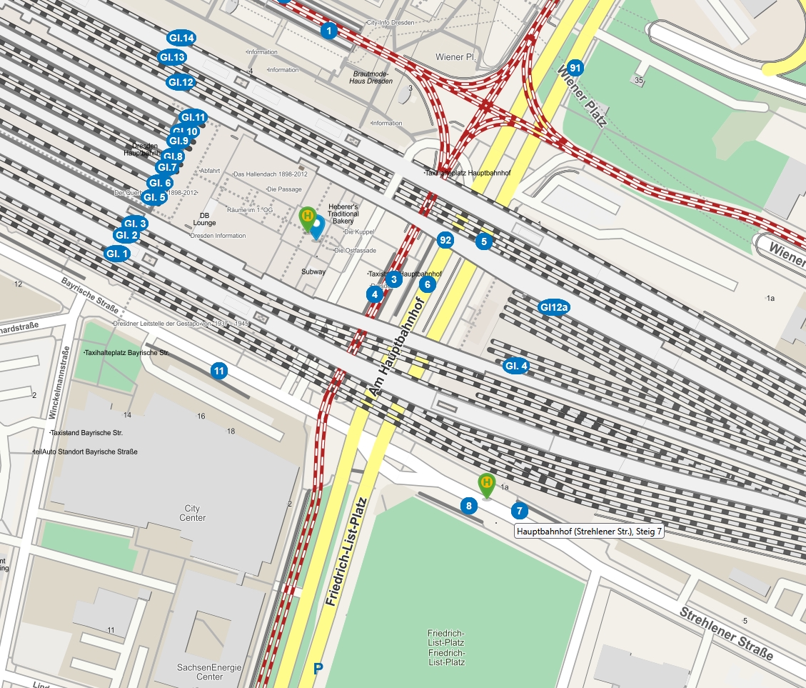Die Abfahrten des Ersatzverkehrs am Dresdner Hbf erfolgen von Steig 7 - Strehlener Straße.