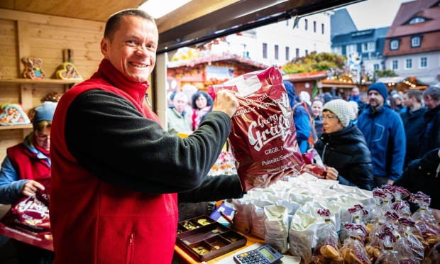 Probieren Sie zum Pfefferkuchenmarkt die handgemachten Köstlichkeiten der Pfefferküchlermeister. Für die Anreise nach Pulsnitz fahren Shuttle-Busse und die S-Bahn S 8 bietet mehr Sitzplätze an.
